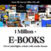 1 Million+ Ebooks + 1 Million PLR Articles Bonus with reseller rights | 1M Ebooks bundle $0.99 Save:$5.00(80%)
